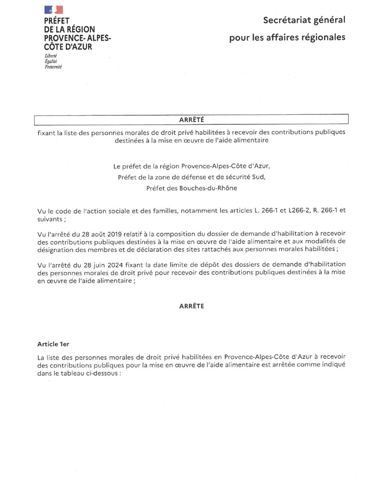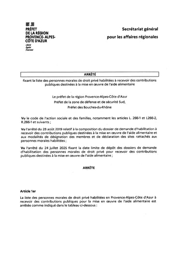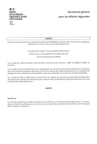 Arrêté du Préfet de la région PACA